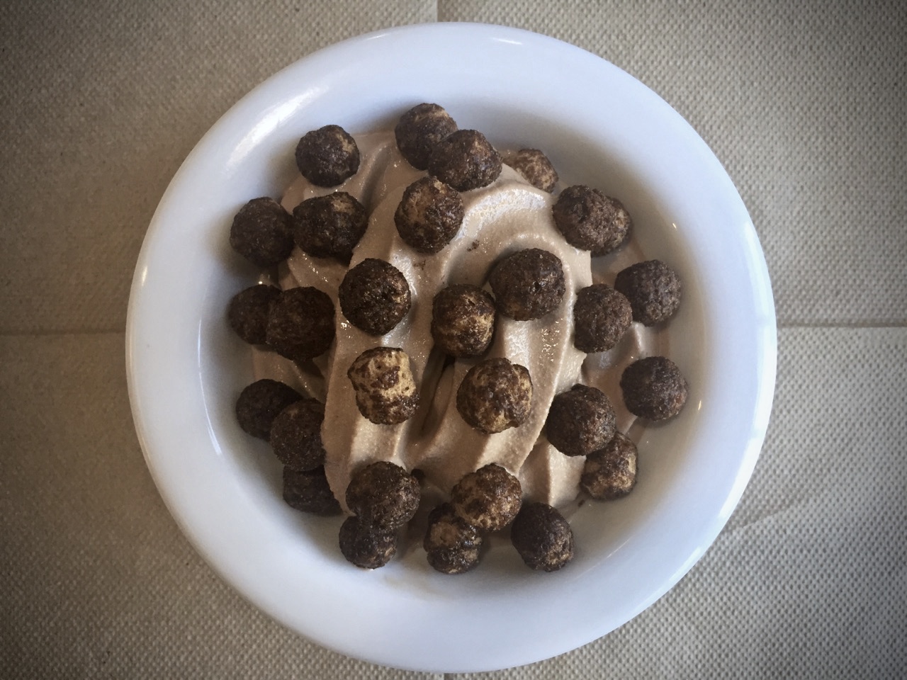 The crunch of the chocolatey corn cereal ball stole my attention for a few seconds